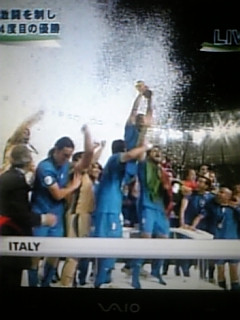 ジダンが頭突きをしました。 わたしは、優勝したのがイタリアでとても嬉しく思い、 感動すら覚えたのだが、このジダンのプレイを考えると、 そうも言っていられない。 差別的なことをマテラッツィに言われての行動らしいが、 試合中に頭突きしなくても良かったのではないか。 なんていうふうに考える。 母親を侮辱され、チームのみんなを侮辱された憎しみが 怒りに変わっての咄嗟の反応。 ここで胸にグッとしまいこみ、抑えることができる人が 良識人とはとても言い切れないが、 見ていてすこぶるショックであり、素直にイタリアの優勝、 そして、W杯を楽しめない自分がいたのであった。 でも、 ジダンは頭突きしてよかったんだよ。 って、考える部分がもの凄く頭のなかを占めている。 恰好良いよ、あんた。 侮辱されて怒りをあらわにできる人間、恰好良いよ。 わたしには到底無理だ。 そんなのは良いとして、W杯はW杯。 優勝したのはイタリアだ。 マスコミは、ジダンのことを取り上げるばかりではなく、 今まで行われてきた熱き戦いをきちんと振り返るべきだ。 ジダンの頭突きばかりスクープするのではなく、 もっとほかに、良きプレイをしたトバゴのチームは 今何をしているか、や、イタリアのザンブロッタの見事なディフェンスの 数々を報道すべきだし、もっともっと、美しいW杯の伝説を残すべきなのだ。 決勝で、あんなにも鮮烈に記憶に残るようなプレイをしたばっかりに ジダンの話でもちきりじゃねえか。 マスコミが嫌いです。そんなマスコミが、嫌いです。 優勝したのはイタリアであり、 賭博がどうであれ、八百長がどうであれ、 ファインセイブし続けたブッフォンに魅了されるべきです。 なんちてー。 感動的な表彰式。 感動的って言ったらば、 「それは、イタリアを応援していたからじゃない?」 といわれて頷いた本日でありました。 もうジダンネタやめてくれ。 【コピーライト:ウソのようなナウ】 |